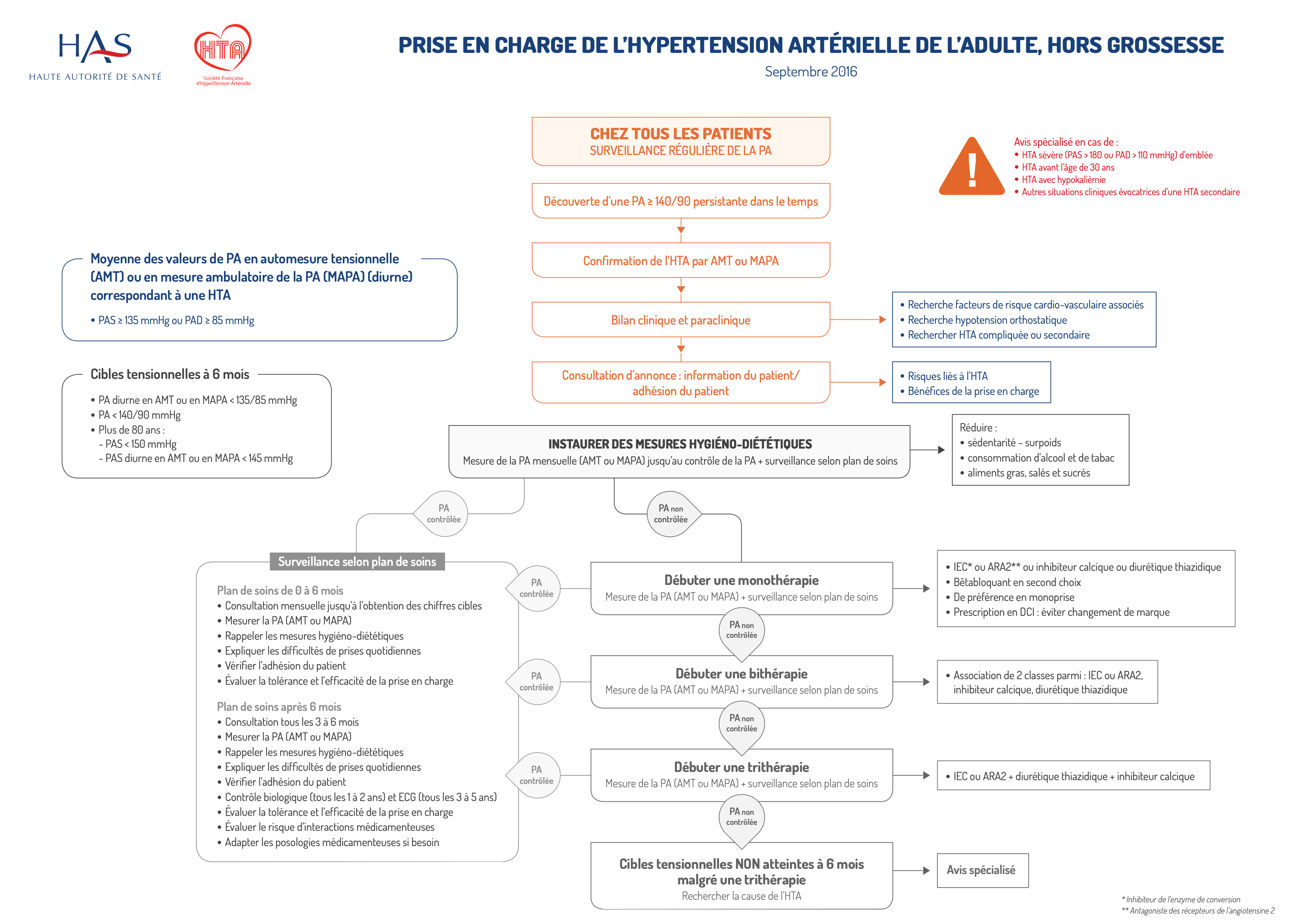 - le délai de mise en route du traitement médicamenteux sera adapté pour atteindre l'objectif d'une PA contrôlée à 6 mois