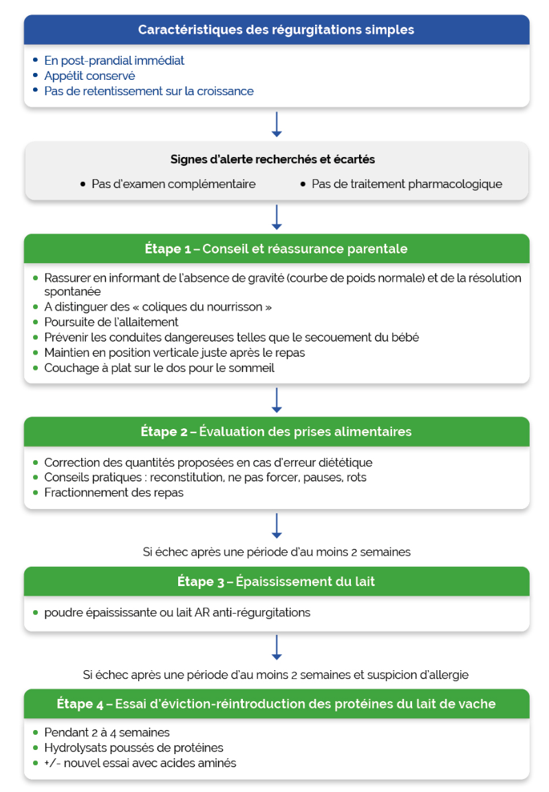 - Les régurgitations simples ne nécessitent aucun test ni aucun traitement pharmacologique.