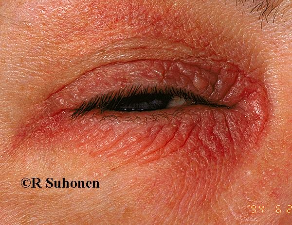 Figure 6. Dermatite atopique sur les paupières.La dermatite atopique est souvent localisée sur les paupières. L’examen du reste de la peau du patient est utile pour le diagnostic.