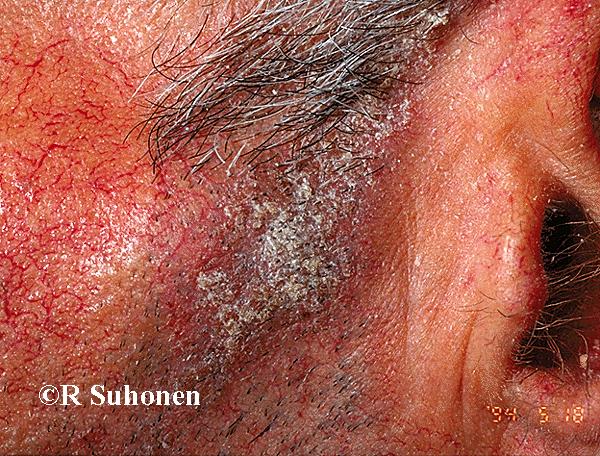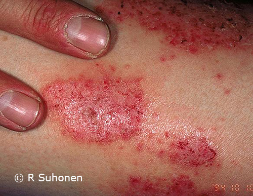 ), les lésions sont bien délimitées et les squames sont plus épaisses.